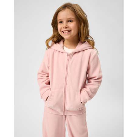 Однотонная велюровая толстовка для девочки Futurino в розовом цвете, с ушками на капюшоне.