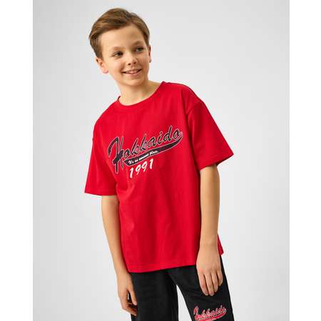 Красная футболка для мальчика Futurino, декорированная контрастным принтом с надписью.