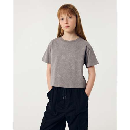 Футболка для девочки Futurino в сером цвете, декорирована стразами.