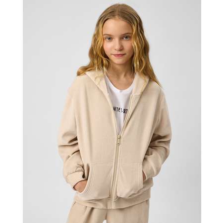 Однотонная велюровая толстовка для девочки Futurino в бежевом цвете.