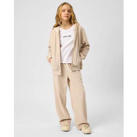 Широкие велюровые брюки для девочки Futurino в бежевом цвете.