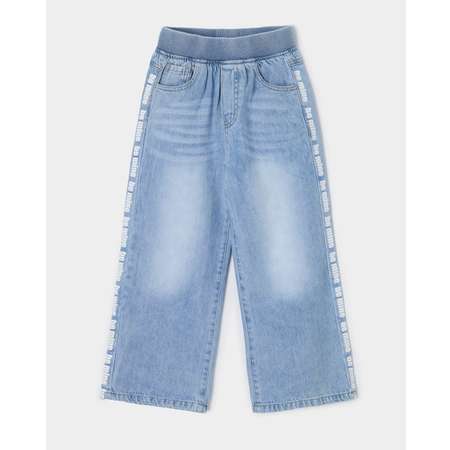Широкие джинсы для девочки Futurino голубого цвета, с лампасами.