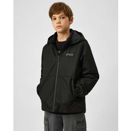 Мембранная куртка для мальчика Futurino чёрного цвета, со светоотражающей надписью.