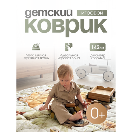 Представляем вашему вниманию детский развивающий коврик круглый, который станет идеальным дополнением для игровой зоны вашего малыша. Этот мягкий и уютный ковер предназначен для детей с рождения и идеально подходит для выкладывания малыша на животик. Тканевый коврик выполнен из высококачественного материала с ярким принтом животных, что не только радует глаз, но и способствует развитию визуального восприятия. Универсальность коврика позволяет использовать его для игр на полу, что делает его незаменимым в повседневной жизни. Благодаря антискользящему покрытию на коврике, вы можете быть уверены в безопасности вашего ребенка во время игр. Малыш сможет легко учиться ползать и исследовать окружающий мир, не беспокоясь о том, что он может поскользнуться. Этот коврик не только практичен, но и легко стирается, что является важным аспектом для родителей. Вы можете не переживать о загрязнениях — просто бросьте его в стирку, и он снова будет как новый! Круглая форма коврика создает уютную атмосферу в интерьере и позволяет ему гармонично вписаться в любое помещение. Развивающий коврик станет отличным местом для игр вашего малыша, способствуя его физическому и эмоциональному развитию. Яркие цвета и забавные изображения животных привлекут внимание ребенка, а мягкая текстура обеспечит комфорт во время игр. Создайте безопасное и вдохновляющее пространство для вашего малыша с помощью этого замечательного коврика!