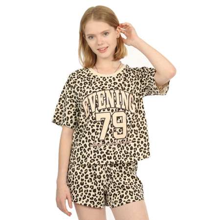 Пижама для девочки с шортами и футболкой N.O.A., леопардовый принт, 100% хлопок