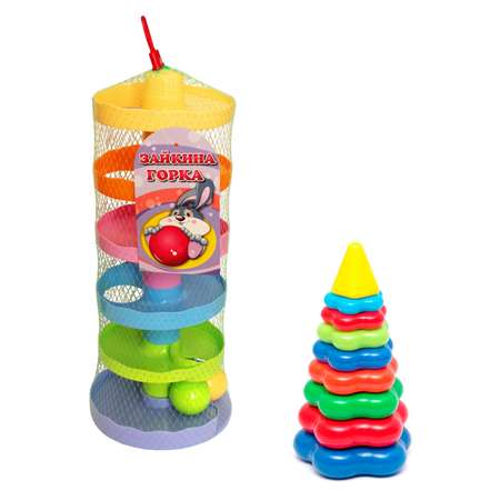 Детский развивающий набор для малышей Пирамидка Зайкина горка с шариками + Пирамидка детская большая