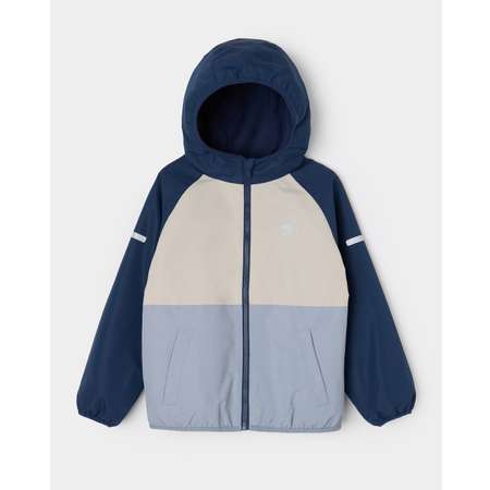Лёгкая куртка для мальчика Futurino в бежево-синем цвете, со светоотражающим принтом.
