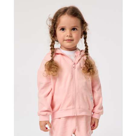 Махровая толстовка для девочки BabyGо Trend в розовом цвете, декорирована нашивкой.