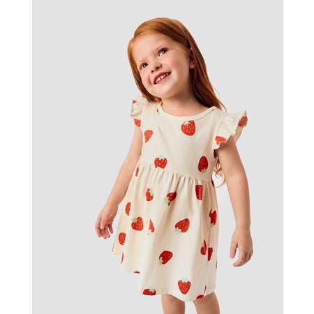 Белое платье для девочки BabyGо с ягодным принтом.