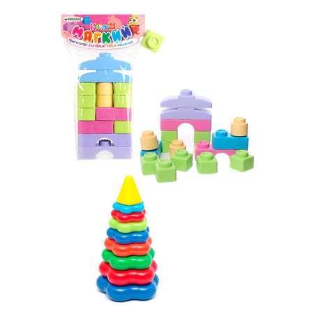 Детский развивающий мягкий конструктор Кнопик 14 крупных деталей + Пирамидка детская большая. Пирамида большая детская большая состоит из 10 элементов различного размера, формы и цвета. Выполнена в ярких цветах, что отлично развивает в ребенке цветовосприятие. Элементы собираются только в заданном порядке по размеру, что развивает в ребенке логику мышления и мелкую моторику рук. Изготовлена из экологически чистого материала. Мягкий конструктор - это игрушки для развития моторики и мышления у детей от года. Развивающий конструктор для малышей легко моется, можно брать с собой ванну. Конструкторы могут быть полезны как для мальчиков, так и для девочек, их можно использовать не только для игр, но и для образовательных целей. Размеры деталей удобны для детской ручки, безопасный материал, детали разной формы, материал легко моется, не боится воды и банных процедур, можно брать с собой ванну. Детали конструктора крупные и при этом очень легкие, выполнены из безопасного нетоксичного прорезиненного пластика, который не обладает запахом. Приобретение конструкторов - это отличный выбор для родителей, которые хотят развивать у своих детей творческие способности, логическое мышление и пространственное воображение. Мягкие конструкторы также могут использоваться для игр в песочнице или в ванной. Такой набор станет отличным подарком для мальчика, для девочки на день рождения, новый год, 23 февраля, 8 марта или просто так. Подойдет как подарок в детский сад. Размер пирамидки 26х13х13 см. Комплектация: 14 деталей. Кубик - 2 вида 6 и 2 шт. (4х4х4 см), длинные детали 2 вида по 2 шт. (12х4х4 см.), прямоугольники - 2 шт. (8х4х4 см.). Упаковка: пакет с картонной ручкой. Размеры упаковки: 12х32х4 см. Возраст 1+.