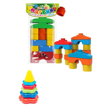 Детский развивающий мягкий конструктор Кнопик 14 крупных деталей + Пирамидка детская малая. Пирамида детская состоит из 7 элементов различного размера, формы и цвета. Выполнена в ярких цветах, что отлично развивает в ребенке цветовосприятие. Элементы собираются только в заданном порядке по размеру, что развивает в ребенке логику мышления и мелкую моторику рук. Изготовлена из экологически чистого материала. Мягкий конструктор - это игрушки для развития моторики и мышления у детей от года. Развивающий конструктор для малышей легко моется, можно брать с собой ванну. Конструкторы могут быть полезны как для мальчиков, так и для девочек, их можно использовать не только для игр, но и для образовательных целей. Размеры деталей удобны для детской ручки, безопасный материал, детали разной формы, материал легко моется, не боится воды и банных процедур, можно брать с собой ванну. Детали конструктора крупные и при этом очень легкие, выполнены из безопасного нетоксичного прорезиненного пластика, который не обладает запахом. Приобретение конструкторов - это отличный выбор для родителей, которые хотят развивать у своих детей творческие способности, логическое мышление и пространственное воображение. Мягкие конструкторы также могут использоваться для игр в песочнице или в ванной. Такой набор станет отличным подарком для мальчика, для девочки на день рождения, новый год, 23 февраля, 8 марта или просто так. Подойдет как подарок в детский сад. Размер пирамидки: 10х10х17 см. Комплектация: 14 деталей. Кубик - 2 вида 6 и 2 шт. (4х4х4 см), длинные детали 2 вида по 2 шт. (12х4х4 см.), прямоугольники - 2 шт. (8х4х4 см.). Упаковка: пакет с картонной ручкой. Размеры упаковки: 12х32х4 см. Возраст 1+.