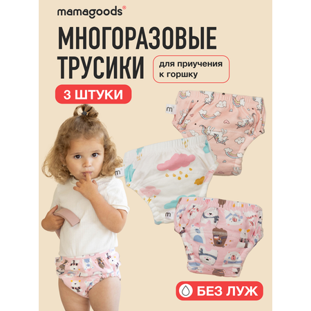 Цена на Набор трусиков для приучения к горшку для девочек 3шт (облака, единороги, мишки розовые) размер L - 1100 ₽.