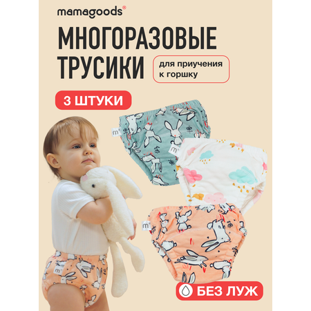 Цена на Набор трусиков для приучения к горшку для девочек 3шт (облака, голубые зайки, розовые зайки) размер L - 1049 ₽.