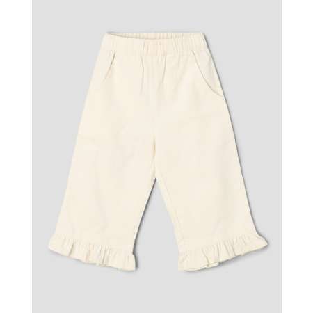 Широкие вельветовые брюки для девочки BabyGo молочного цвета, с оборками.