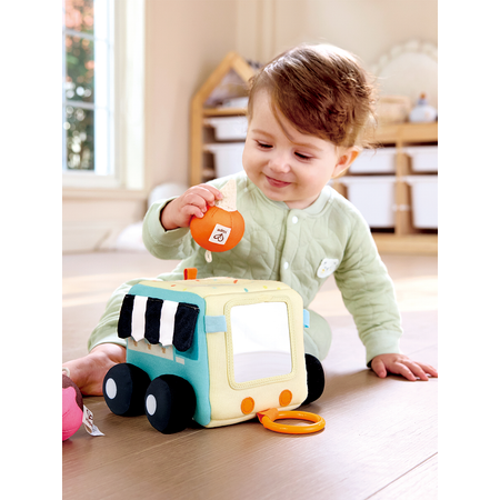 • Материал с множеством ощущений: вся игрушка сделана из нескольких материалов, дарящих различные тактильные впечатления, пробуждая чувства малыша.