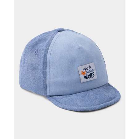Текстильная синяя кепка для мальчика BabyGо, декорированная нашивкой.