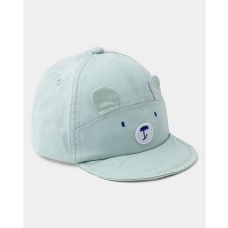 Текстильная мятная кепка для мальчика BabyGо с объёмным декором в виде медвежонка.