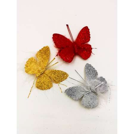 Украшение ёлочное Магия праздника «Бабочки» на прищепках 7 см 3 шт
