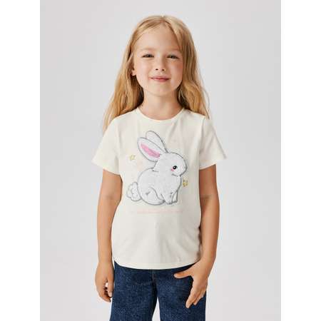 Детская футболка для девочки выполнена из легкой и воздушной кулирной глади, которая позволяет коже дышать. Модель REGULAR fit отличается приталенным кроем и стандартной длиной рукава, что обещает комфортную посадку по фигуре. Округлая горловина не мешает при одевании. Спереди расположены аппликация в виде кролика из искусственного меха и надписи "YOU SMILE CAN CHANGE THE WORLD" англ. - "Твоя моя улыбка сможет изменить мир", что придает изделию милый и очаровательный вид. Модель представлена в трех цветах: молочном, розовом и фиолетовом. Комбинируйте футболку с джинсами и джинсовой жилеткой для создания стильного повседневного аутфита. Рост модели на фото 109. Размер на модели 110.