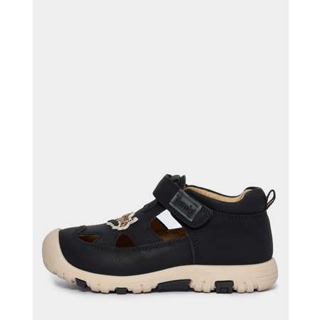Закрытые сандалии для мальчика Tombi чёрного цвета, с объёмными нашивками.