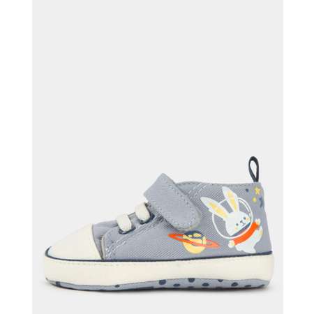 Текстильные пинетки для мальчика Tombi в виде кед, декорированных цветным принтом.