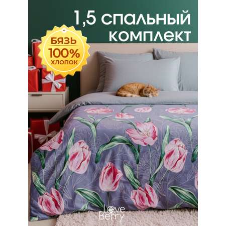 Комплект постельного белья LOVEBERRY Тюльпаны полутораспальный 4 предм.