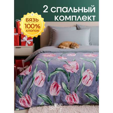 Комплект постельного белья LOVEBERRY Тюльпаны двуспальный 4 предм.