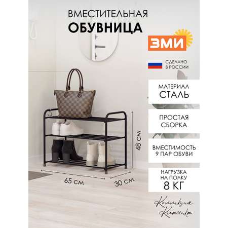 Обувница ЗМИ Альфа 23 с металлическими полками на 9 пар обуви, мебель для прихожей, черная