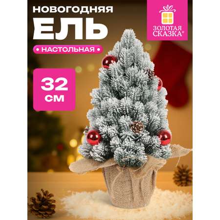 "Настольная ель новогодняя искусственная высотой 32 см от ЗОЛОТАЯ СКАЗКА станет стильным и уютным украшением для дома или офиса в праздничный сезон. Эта елка искусственная литая изготовлена из прочного 100% литого ПЭТ, что обеспечивает реалистичный вид и долговечность. Заснеженные иголки с искусственным белым снегом, красные шарики и декоративные шишки создают атмосферу настоящего зимнего леса. Подставка обтянута холщовой тканью, добавляя натуральности образу. Ветви уже крепятся к стволу, достаточно аккуратно расправить их, чтобы придать живую форму. Эта новогодняя елка идеально подходит как новогодние украшения для дома, создавая праздничное настроение и уют. Елочные игрушки и украшения на ней смотрятся эффектно, делая праздник особенно ярким и запоминающимся. Выберите эту елку для праздника, чтобы каждое мгновение радовало глаз и наполняло дом теплом и волшебством в Новый год.