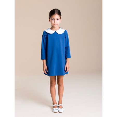 Платье Ete Children синего цвета с рукавами 3/4. Платье украшено белым несъемным воротником.