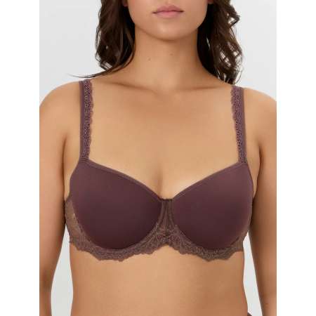 Бюстгальтер для женщин гладкий коричневого цвета отличается удобством и практичностью. Мягкий текстильный материал обеспечивает комфорт при ношении, а тонкий поролоновый лифчик с анатомической чашкой поддерживает форму и не обтягивает лишнего. Конструкция с косточками предлагает надежную поддержку и обтягивает грудь мягко, не создавая давления. Нижний вырез модели формирует естественный силуэт, идеально подходит для одежды с разными вырезами.