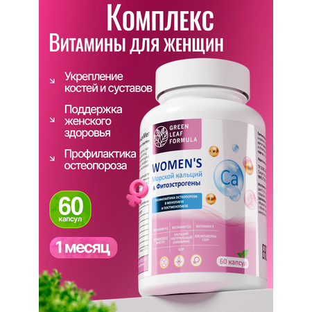 Кальций Д3 К2 для женщин фитоэстрогены Green Leaf Formula Витамины для костей от остеопороза фитоэстрогены