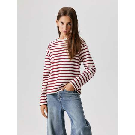Детский базовый лонгслив в красную полоску для девочки изготовлен из качественного трикотажа. Модель COMFORT fit отличается свободным кроем для более комфортного ношения: приспущенная линия плеча, а также увеличенный объем рукава дарят свободу движений и позволяют создавать многослойные образы в демисезон. Удобная округлая горловина не мешает при одевании. Благодаря длинным рукавам и дышащему материалу лонгслив является всесезонной моделью, подходящей для разной погоды. Горизонтальная бордовая полоска оживляет и разбавляет базовые образы с джинсами или сарафанами, придавая им динамичности и сложности. Модель представлена в нескольких цветах. Добавьте к лонгсливу любимые джинсы, чтобы быстро составить повседневный лук.