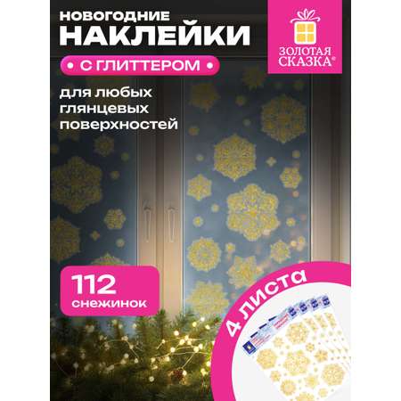 "Подарите дому уют и волшебство с наклейками из набора «112 СНЕЖИНОК» от ЗОЛОТАЯ СКАЗКА – идеальным новогодним украшением для окон и стекол. Этот комплект из 4 листов размером 30х38 см украшен золотистым глиттером и включает 28 снежинок на каждом листе, создавая праздничный декор, который подойдет для комнаты и офиса. Благодаря статическому эффекту наклейки легко крепятся на окна, зеркала и другие глянцевые поверхности, не оставляя следов и позволяя использовать их многократно. Эти новогодние наклейки на стену для декора станут ярким акцентом в подготовке к Новому году 2026, создавая атмосферу радости и праздника, особенно если вы ищете детские наклейки, которые безопасны и просты в применении. Сделайте оформление вашего интерьера оригинальным и стильным с этими универсальными наклейками для стен и окон!