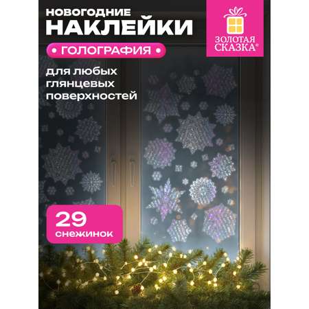 Новогодняя наклейка Золотая сказка на окна и стекла многоразовая Снежинки 30x38 см