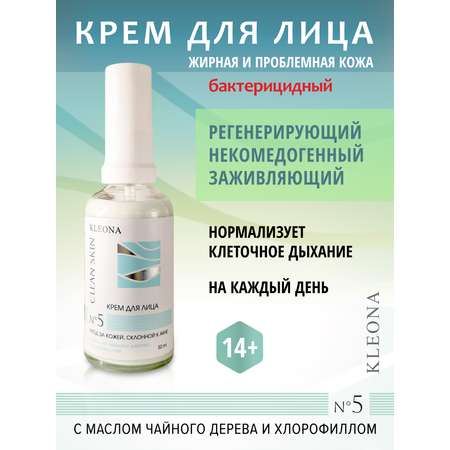 Крем для лица "Clean Skin" с молочной кислотой и комплексом увлажняющих масел день / ночь от Клеона подойдет любому типу кожи лица: жирной, нормальной и сухой, не будет создавать пленку и хорошо ложиться под макияж. Не забивая поры, крем не провоцирует появление прыщей, черных точек или других несовершенств. Натуральный крем с маслом чайного дерева и хлорофиллом предназначен для очищения и восстановления кожи, склонной к частым воспалениям, вызванным инфекцией, устойчивой к обычным антимикробным средствам или ослаблением местного иммунитета. 14+ Обладает мощной антибактериальной и противовирусной активностью, борется с бактериями на протяжении всего дня. Способствует заживлению воспалительных элементов. Улучшает клеточное дыхание. Приятным дополнением становится эластичность кожи, ровный тон, снятие покраснений и раздражений. При регулярном применении несовершенства становятся менее выраженными. Растительный хлорофилл – улучшает клеточное дыхание. Повышает защитные свойства кожи, ее способность к саморегуляции и восстановлению. Способствует насыщению кожи кислородом, ускоряет обменные процессы, омолаживает и оздоравливает, улучшает цвет лица. Натуральный состав обеспечивает нежный и безопасный уход за вашей кожей. Эфирное масло чайного дерева – природный антисептик, оказывает сильное бактерицидное действие, предупреждает новые высыпания на лице. Молочная кислота - уменьшает гиперпигментацию и следы постакне. Кокосовое масло - защищает кожу от обезжиривания и обезвоживания. Удобная упаковка с дозатором выдает необходимое количество средства. Экономный расход, удобная форма. Способ применения: нанесите крем на очищенную кожу лица, шеи и зоны декольте легкими движениями по массажным линиям. Крем станет отличным подарком на новый год, 8 марта и любой праздник маме, жене, девушке. Компания Клеона - российский производитель, вся продукция проходит клинические испытания и имеет Сертификат, это подтверждает качество и безопасность бренда.
