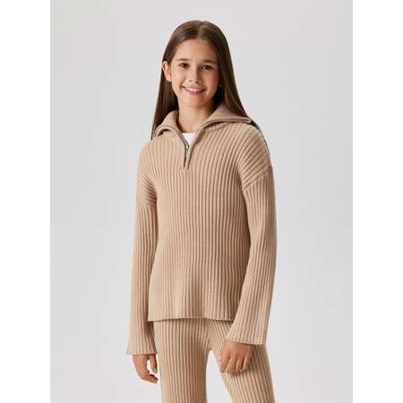 Детский вязаный кардиган с отложным воротником для девочки — это стильная и удобная модель для создания теплых демисезонных образов. Джемпер свободной посадки со спущенной линией плеча и свободными рукавами дарит свободу и легкость движений, позволяя создавать многослойные образы в демисезон. Модель изготовлена из мягкого и эластичного риба. Плотный джемпер "лапша" комфортно садится на разные типы фигур. Главный акцент модели придает отложной воротник, застегивающийся на молнию. Кардиган представлен в двух цветах: белом и серо-бежевом. Дополните джемпер брюками из того же материала (20210160477), чтобы собрать стильный и теплый демисезонный костюм для девочки.