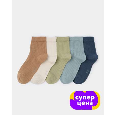 В комплекте BabyGо пять пар однотонных носков в рубчик для мальчика - коричневые, бежевые, зелёные, голубые и синие.