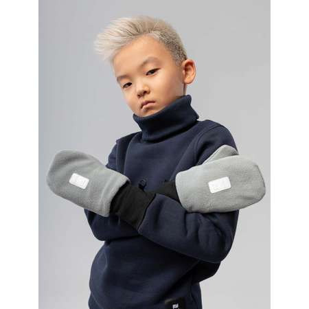 Высокие рукавицы с манжетами из рибаны, сохраняющей тепло, карабин скрепляет варежки между собой.