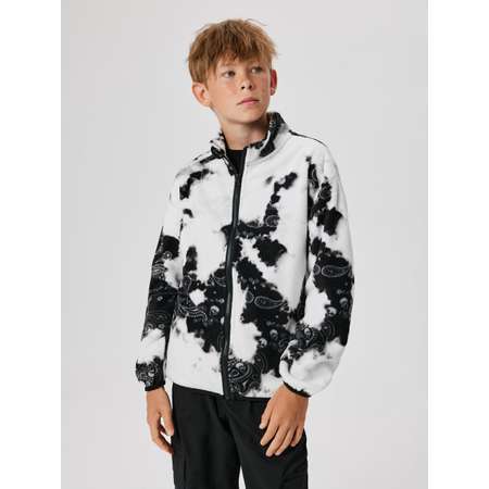 Детская олимпийка для мальчика выполнена из легкого и мягкого флиса, который отлично сохраняет тепло во время ношения. Модель свободного силуэта позволяет создавать стильные многослойные аутфиты. Застежка на молнию облегчает одевание. Флиска на молнии с приспущенной линией плеча придает луку расслабленный вид. Воротник-стойка мягко облегает горло, избавляя от необходимости носить шарф. Два боковых кармана позволяют хранить необходимые мелочи и согревать руки. Черно-белая олимпийка с графическим принтом выглядит стильно и оригинально, привлекая внимание к аутфиту юного модника. Добавьте изделие к брюкам и свитшоту, чтобы создать оригинальный повседневный образ на каждый день.