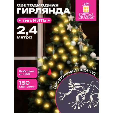 "Создайте волшебную атмосферу в вашем доме с гирляндой-пучками ""Bundles"" от ЗОЛОТАЯ СКАЗКА. Этот новогодний декор для комнаты длиной 2,4 метра состоит из 10 пучков с 150 LED лампами, излучающими теплый белый свет, который мягко озарит любое пространство. Благодаря удобному питанию от USB, гирлянда идеально подходит для украшения дома и офиса в Новый год 2026, создавая уют и праздничное настроение. Эта новогодняя гирлянда роса не только стильный декор для комнаты и елки, но и замечательный подарок, который превратит любое помещение в сказочный уголок. Украшения для комнаты с таким светом подчеркнут ваш вкус и добавят волшебства в новогодние праздники!