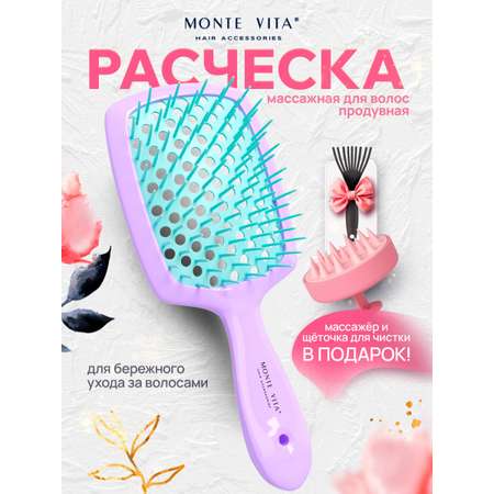 "Расческа для волос массажная MONTE VITA – идеальный выбор для ежедневного ухода и создания стильных причесок. Эта расческа для волос женская с уникальной продувной основой из ABS-пластика бережно сушит и защищает волосы от перегрева, а гибкие зубчики из TPEE мягко фиксируют пряди, отлично подходя даже для кудрявых волос. Эргономичный дизайн обеспечивает комфорт и антистатический эффект, уменьшающий наэлектризованность. В наборе также массажер, который стимулирует рост здоровых волос и уменьшает зуд, а щеточка помогает поддерживать инструменты в чистоте. Такой комплект станет прекрасным подарком маме, подруге или любой женщине на день рождения и по какому угодно поводу, а также замечательным сюрпризом для девочки. Дарите заботу и красоту своим близким с этой универсальной расческой и массажером для волос!