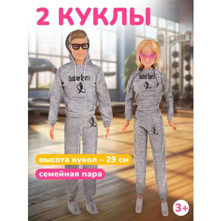 Эта семейная пара кукол дефа люси обожает спорт и сегодня они вышли на прогулку в парном луке. На кукле-девушке и кукле-юноше одинаковые вещи – спортивный костюм цвета «серый меланж» и ботинки. Образ парня дополнен очками в черной оправе, а девушки – очками розового цвета. Высота кукол составляет 29 см, что удобно для детских игр. Игрушки подходят для детей 3, 4, 5, 6 лет и станут отличным подарком для девочки или мальчика.