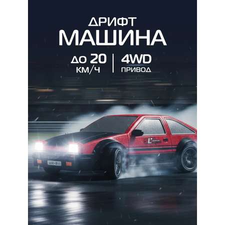 Скоростная машинка на пульте управления для дрифта изготовлена из ударопрочного пластика - отличный выбор для любителей скорости и экстремального вождения, она отлично дополнит игрушечный гараж. Дрифт - техника прохождения поворотов, характеризующаяся использованием управляемого заноса на максимально возможной скорости. В движении машинка развивает скорость свыше 15 км/ч. Благодаря светодиодным фарам, автомобиль может ездить в темноте. В комплекте к машине прилагаются сменные шины. В наборе также вы найдете конусы и бочки, которые позволят выстроить свою трассу.