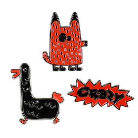 Значки-пины арт. 71129 / 50 Утка ( 3 шт. в наборе; размер значка/-ов: 31х24/31х26/15х35 мм, материал значка/-ов: металл; способ изготовления: штамповка тип застёжки: цанга-бабочка (игла с заглушкой); цвет: чёрный, красный; декор: эмаль холодная (мягкая); индивидуальная упаковка: подложка с европодвесом из мелованного картона + ПЭТ-пакет)
