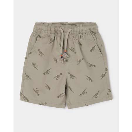 Текстильные шорты для мальчика Futurino цвета хаки, декорированные принтом с динозаврами.
