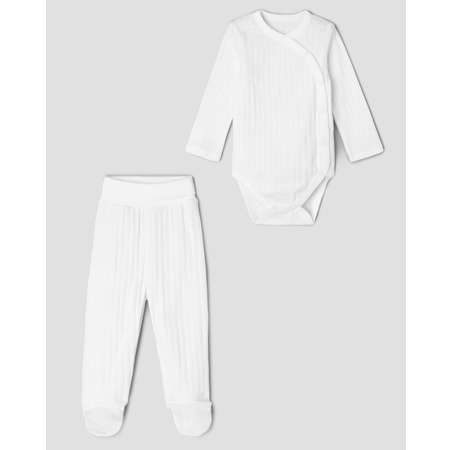 Белый комплект для девочки Моя Горошинка из боди-кимоно и ползунков с нежным узором.