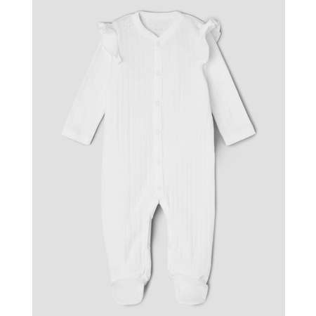 Белый слип для девочки Моя Горошинка с оборками и нежным принтом.