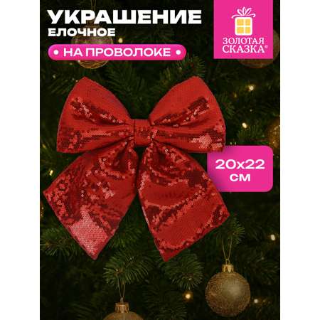 Елочные игрушки Золотая сказка украшение новогодней елки Бант с пайетками 20x22 см