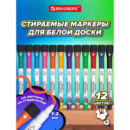 "Откройте для себя удобство и яркость с набором маркеров на магните со стирателем BRAUBERG POP-ART, который идеально подходит для досок и магнитных планеров в школе и офисе. Эти цветные маркеры для рисования и письма имеют 12 насыщенных цветов, включая черный, синий, красный и другие, что делает их незаменимыми письменными принадлежностями для визуализации учебных процессов и рабочих задач на белой доске. Благодаря тонкому пулевидному наконечнику 1-2 мм, каждый фломастер обеспечивает четкие линии на маркерных досках и планерах. Магнитный колпачок позволяет надежно крепить маркер прямо на магнитной поверхности, а встроенная губка-стиратель облегчает удаление записей без разводов. Чернила на спиртовой основе быстро сохнут, что делает эти офисные принадлежности практичными и удобными. Этот набор канцелярии для школы и офиса объединяет качество и функциональность в одном комплекте, который станет незаменимой частью ваших письменных принадлежностей для работы и учебы.